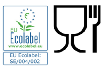 A termék EU Ecolabel (SE/004/002) tanúsítvánnyal rendelkezik, ami garantálja a környezetbarát és fenntartható gyártást. A közvetlenül élelmiszerrel való érintkezés is engedélyezett.