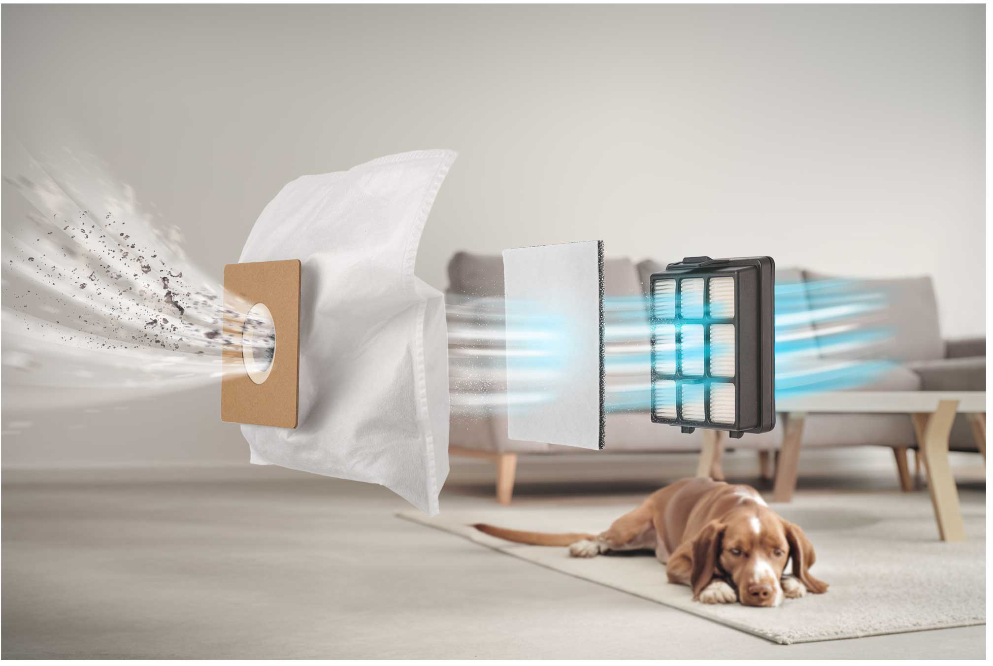 • Clean Air HEPA H13 szűrő, amely allergiások számára is megfelelő, még a finom részecskéket is felfogja