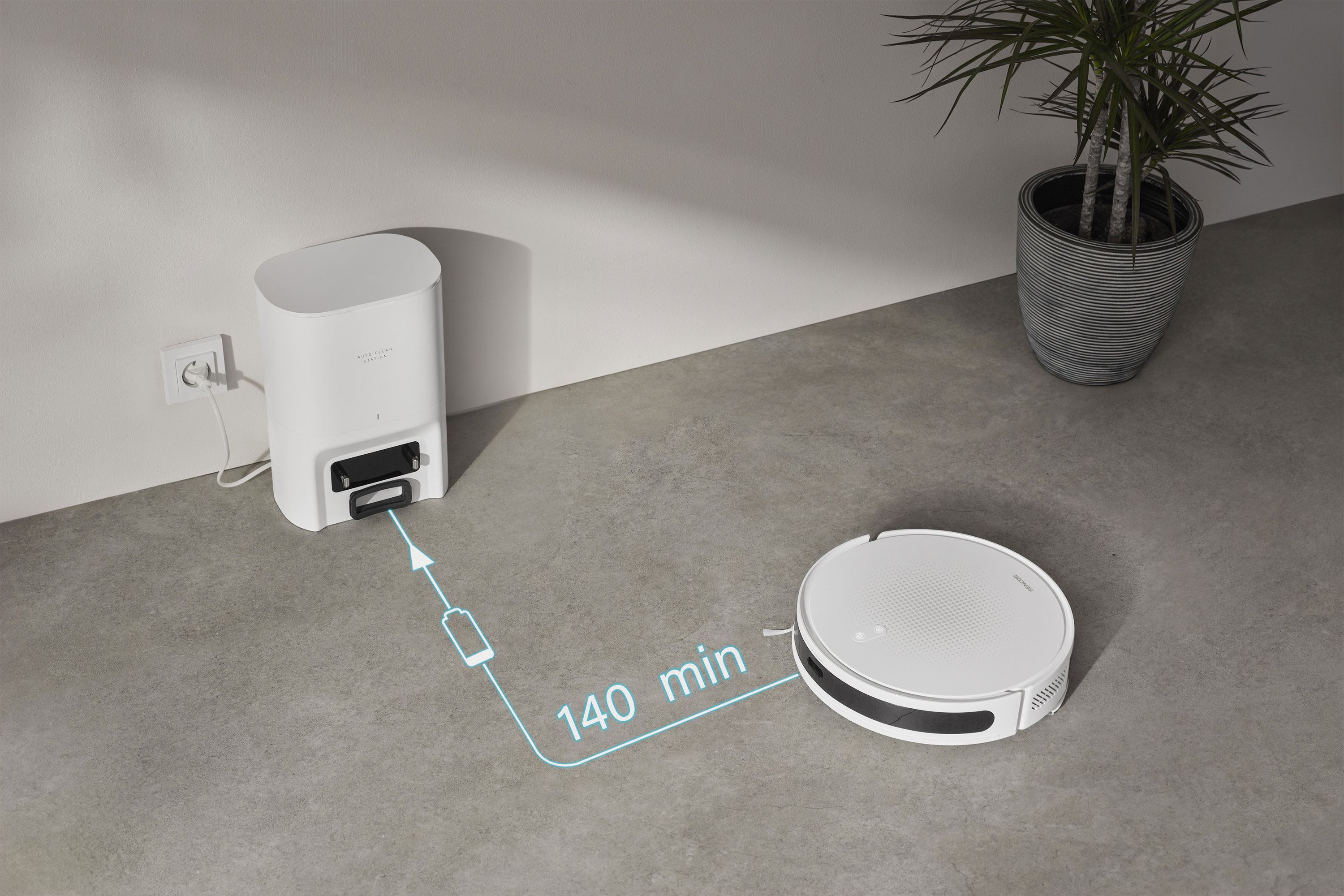 Sencor SRV 7450WH egy intelligens robotporszívó, amely egyidejűleg porszívózik és felmos. A nagy teljesítményű motor és az 5000 Pa szívóerő segítségével tökéletes eredményeket érhet el. A 2600 mAh kapacitású Li-Ion akkumulátor egyetlen töltéssel akár 140 perc működést biztosít. A pontos tájékozódást a Lidar lézeres navigáció biztosítja, amely integrálva van a porszívóba, így a robot magassága csupán 8,3 cm. A navigáció lehetővé teszi például a takarítás tervezését különböző helyiségekben, vagy tiltott zónák beállítását. Az eszközt a Sencor Home mobilalkalmazás vagy a távirányító segítségével vezérelheti. Biztosan értékelni fogja a Bluetooth párosítás egyszerűségét.